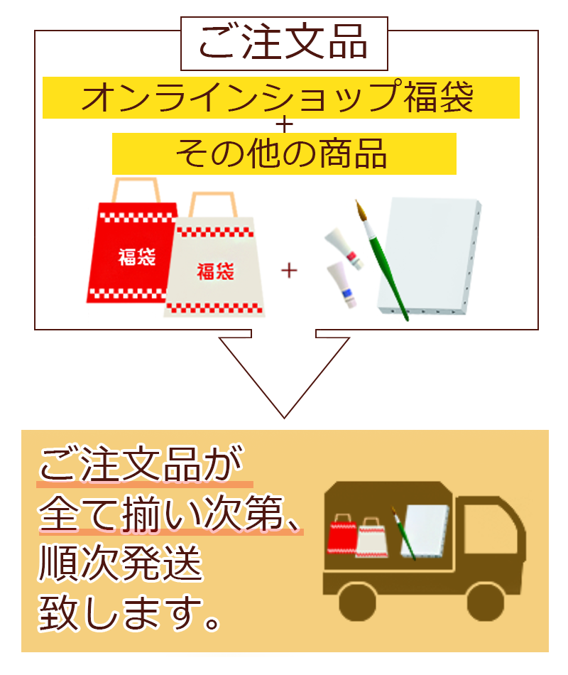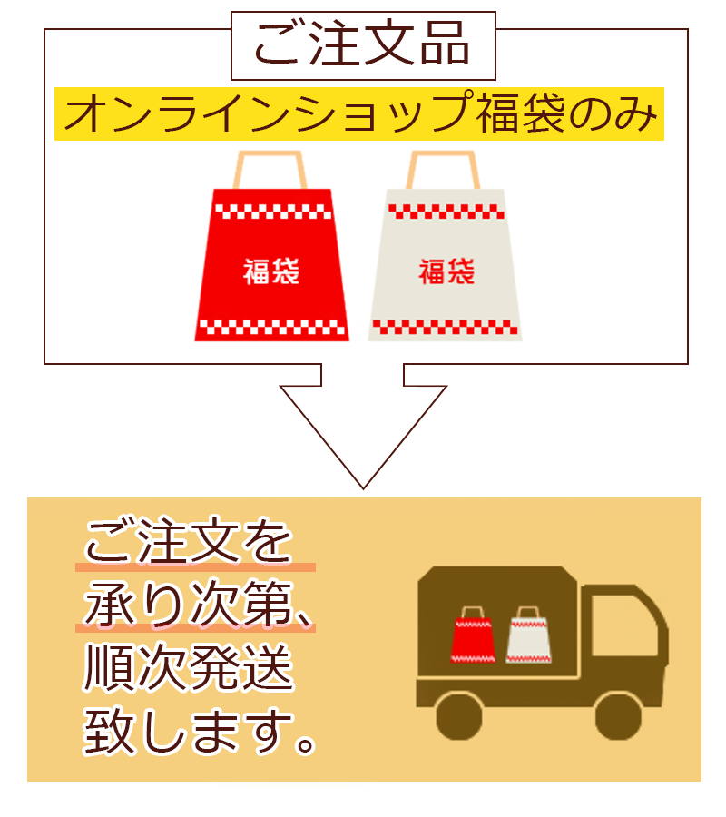 ・福袋のみご注文の場合 福袋のみをご注文頂いた場合は、ご注文を承り次第順次発送致します。