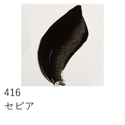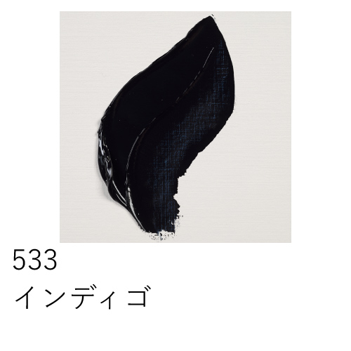 「鉄黒」とよばれる黒色顔料を使用した油絵具で、あっさりとした柔らかい黒色をしています。