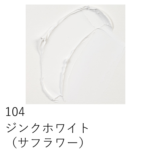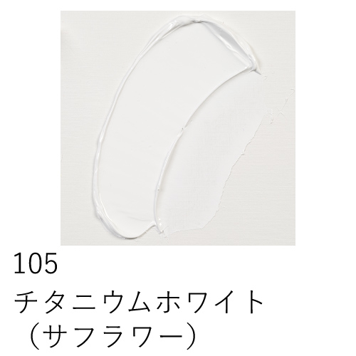 ホワイトの中でも最も純粋な白で、混色に最適なのが、このジンクホワイトです。単独で使う場合は、かすかに青みを帯びているため、他のホワイトよりやや冷たい印象を与えます。耐光性に優れ、直射日光の下でも高い耐光性を発揮します。被覆力は弱く、着色力も低いホワイトです。また皮膜は硬質で、大気の影響は受けません。