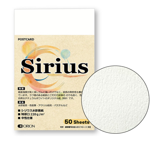 紙肌は鉛筆の乗りの良いラフ肌に仕上げ、色は最も自然なナチュラルホワイトに特漉きしたオリオン社のオリジナル水彩画紙です。