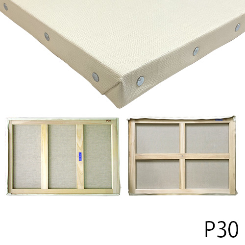 麻100%の生地に(油彩・アクリル)両用の地塗を施した中目キャンバスを軽い桐材の木枠に張り込みました。[アクリル絵具をお使いの場合]