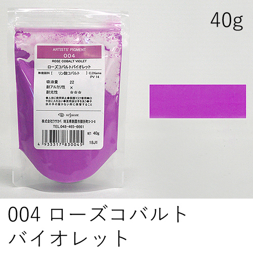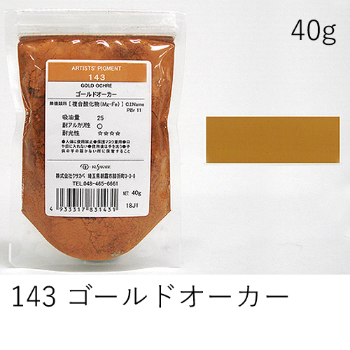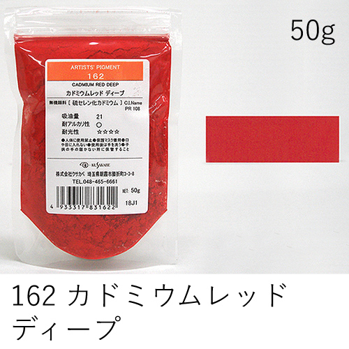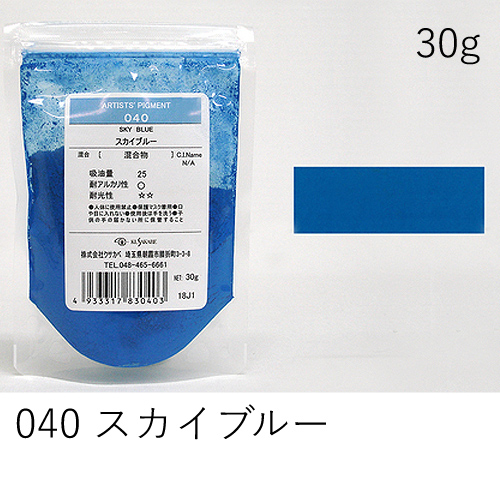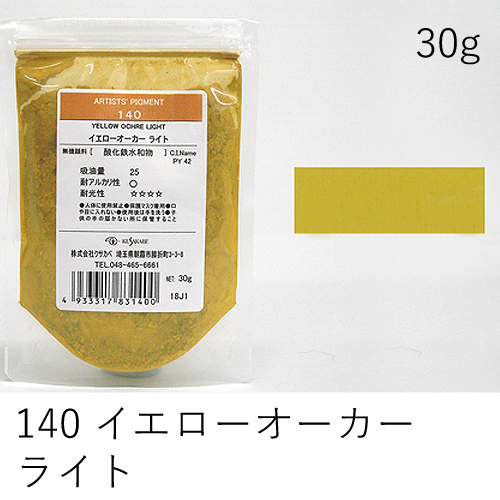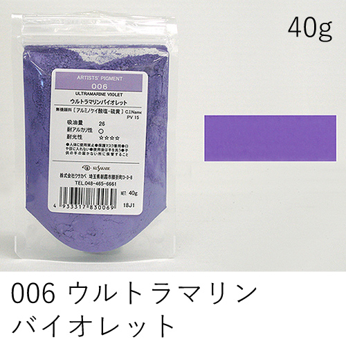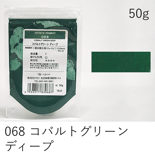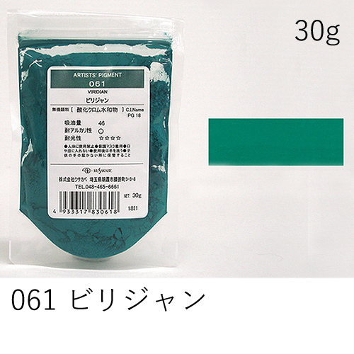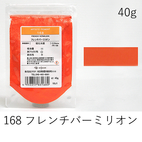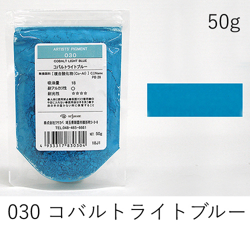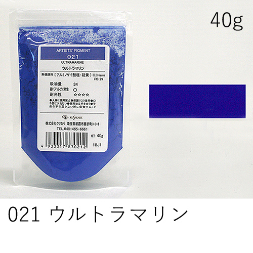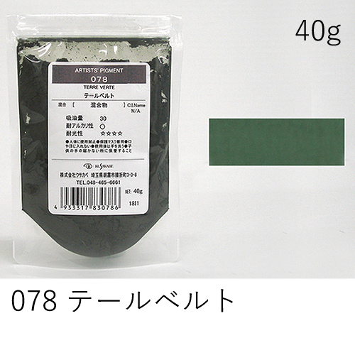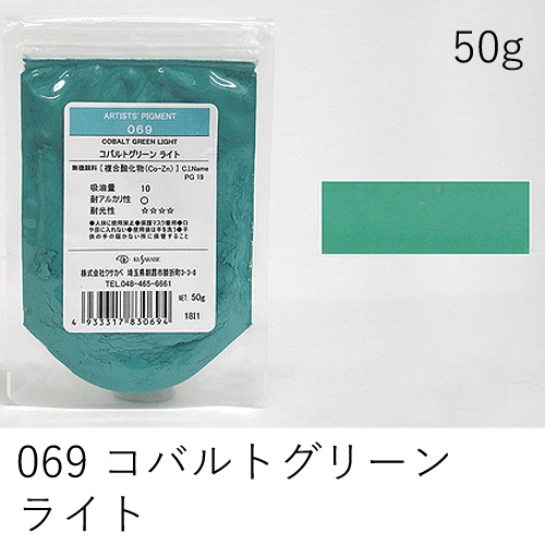 中程度の隠ぺい力、着色力を持ちます。アルカリに弱いためフレスコには向きません。硫黄を含む顔料と反応し、黒変するとされていますが現在ではほとんど起こりえません。