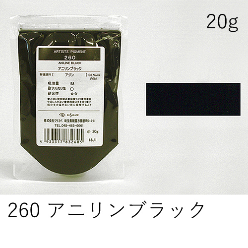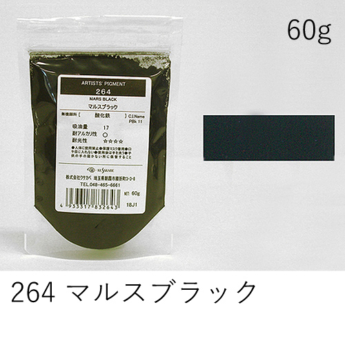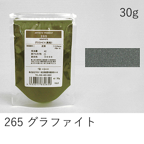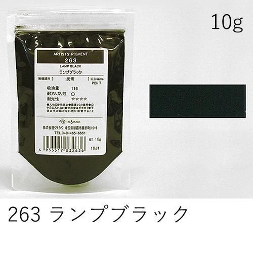 別名「ダイヤモンドブラック」「ジェットブラック」。ガッシュの黒色によく使われます。着色力は強くありませんが、高漆黒度を持ちます。水に浮くため分散剤の併用をおすすめします。