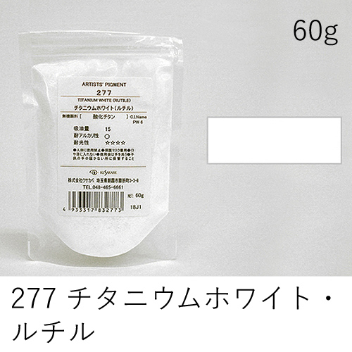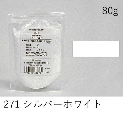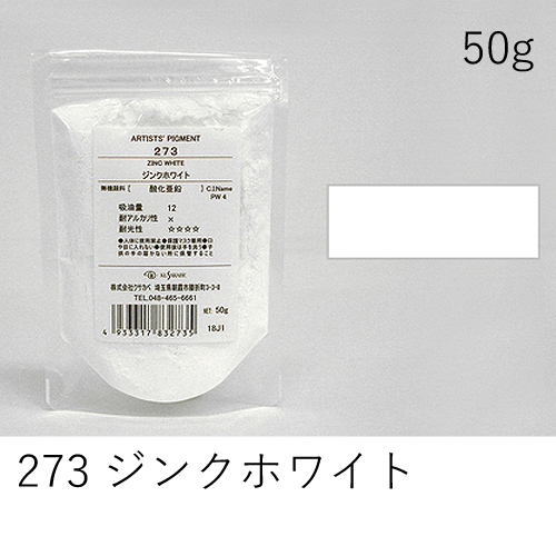 低程度の隠ぺい力、着色力を持ちます。冴えた白で混色しやすい特徴があります。アルカリに弱いためフレスコには向きません。反応性が高いため、白亜化(粉浮き、チョーキング)の可能性があります。