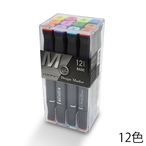 デザインマーカー・ブラシマーカーは共に12色、24色、36色、60色のセット商品もご用意しております。12色セットは初心者の方でも選びやすいようベーシックなセットからビビッド、パルテル、スキン、グレー系と豊富にご用意し、お求めやすくなっております。どれもバランスよく色を揃えておりますので、1セットだけで十分完成度の高い作品が仕上がります。プロの方はもちろんのこと、初心者の方もまずはセットの購入がオススメです。