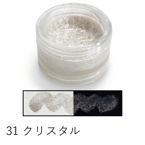 シャインパール固形水彩絵具は、厳選された偏光顔料やパール光沢の顔料、高品質なアラビアガムを使い、光輝性や溶けやすさにこだわった国内製造の水彩絵具です。シャインパール同士や水彩絵具との混合もできるので、効果的にポイント使いすることで表現の幅が広がります。絵具以外にも工作、手芸、日常の手帳にラインを引いたり色彩を加えることもできます。スクリューキャップで容器同士を連結できます。