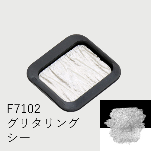 透明パール色。白紙の上ではほぼ透明、視点や光の角度で煌めき、黒い紙の上では、強力な輝きを放つ。
