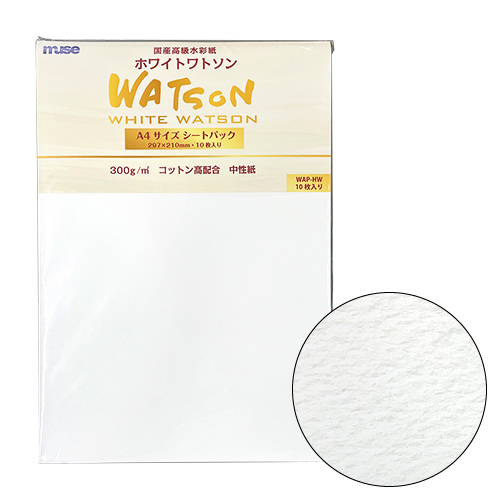 中目の肌を持つ最高級水彩紙ワトソンの特性をそのまま生かし、塩素を使わず自然な白さに仕上げた紙です。