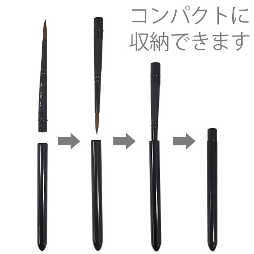 P1797は精密な作業と細部までこだわったデザインの携帯用のトラベルブラシです。中央部で分離する仕様で穂先部を軸側に収納できます。