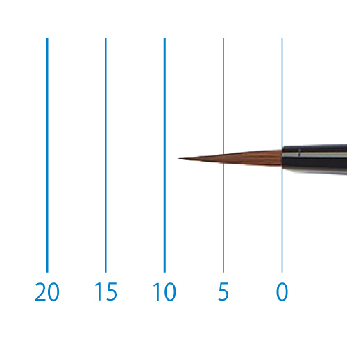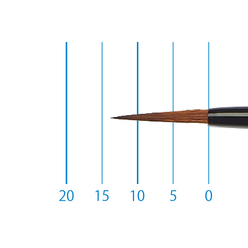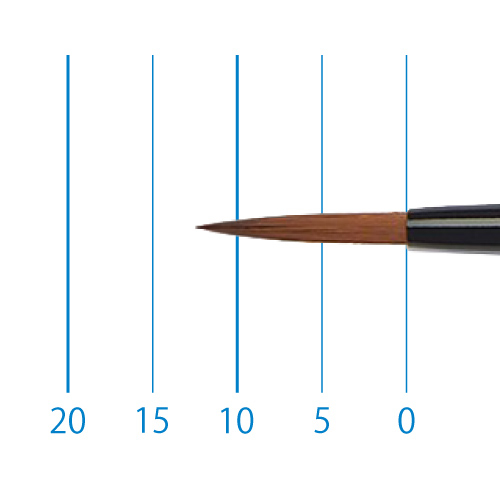 繊維をわずかに波打たせる事で絵具の含みを良くしています。サイズ毎に太さの異なる繊維の配合を変え、適切な弾力性と形状を確保しています。