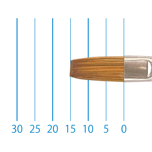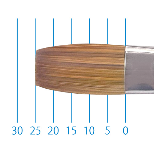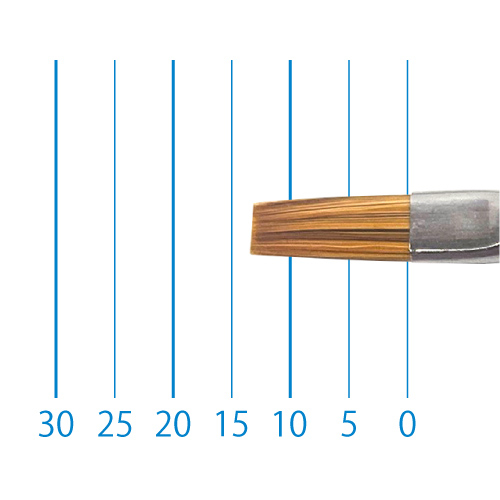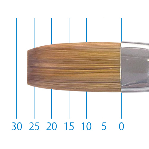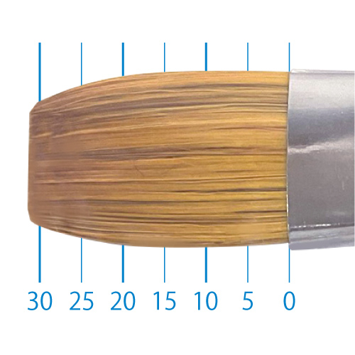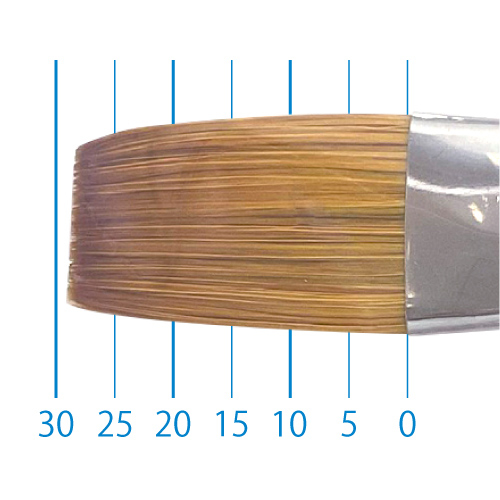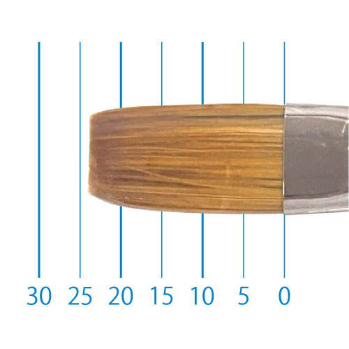天然イタチ毛を再現した新たな合成繊維と、リセーブル毛を組み合わせることで、イタチ毛に近いしなやかさと絵具の含みに、リセーブルの弾力性とまとまりがプラスされました。よく揃った穂先と程よい弾力で、繊細な再現に最適です。日本製。