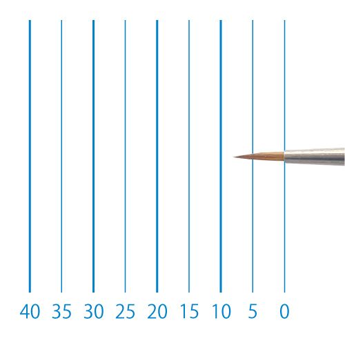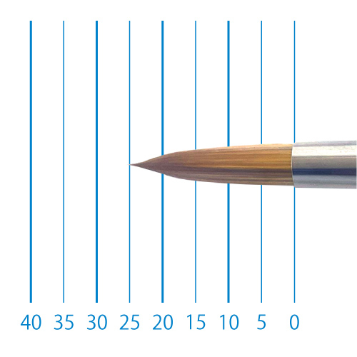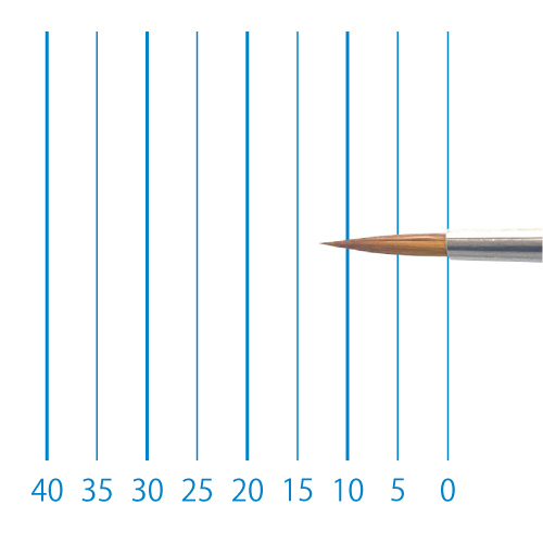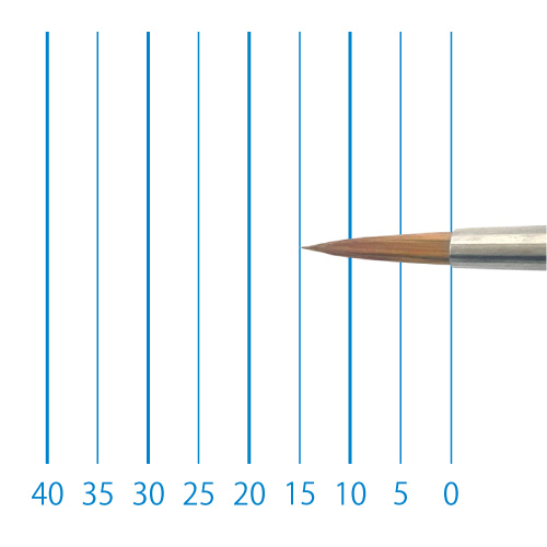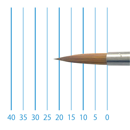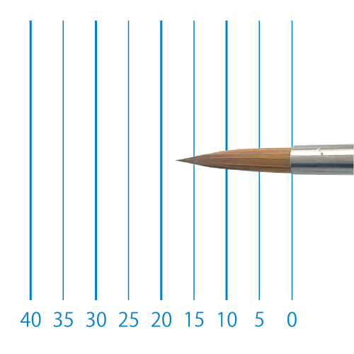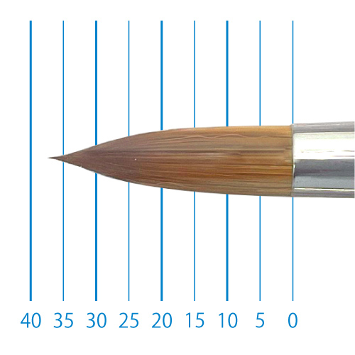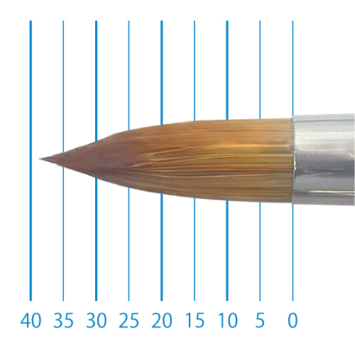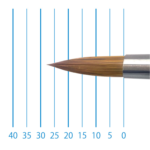 天然イタチ毛を再現した新たな合成繊維と、リセーブル毛を組み合わせることで、イタチ毛に近いしなやかさと絵具の含みに、リセーブルの弾力性とまとまりがプラスされました。よく揃った穂先と程よい弾力で、繊細な再現に最適です。日本製。