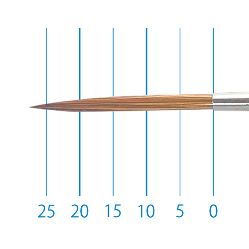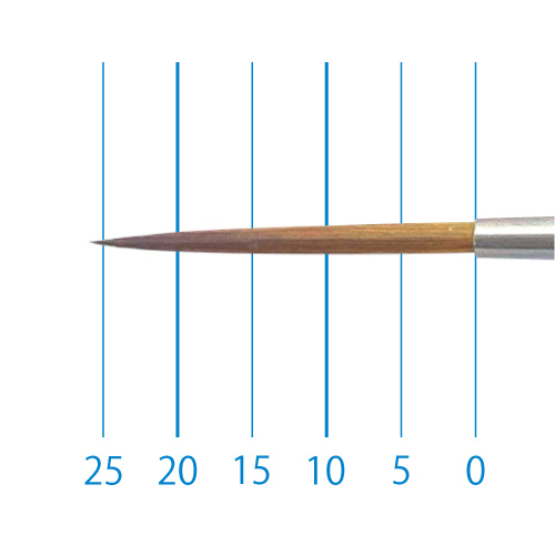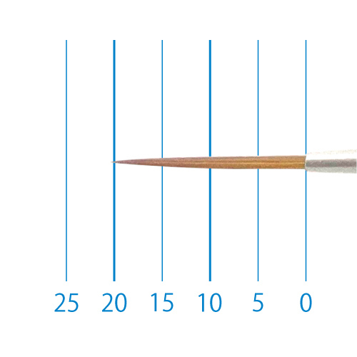 天然イタチ毛を再現した新たな合成繊維と、リセーブル毛を組み合わせることで、イタチ毛に近いしなやかさと絵具の含みに、リセーブルの弾力性とまとまりがプラスされました。よく揃った穂先と程よい弾力で、繊細な再現に最適です。日本製。
