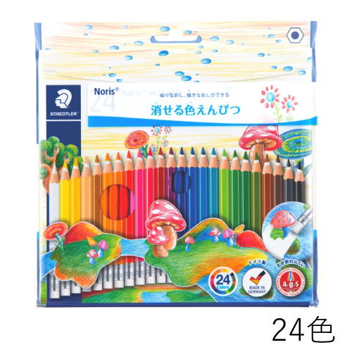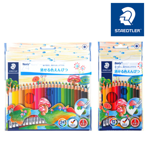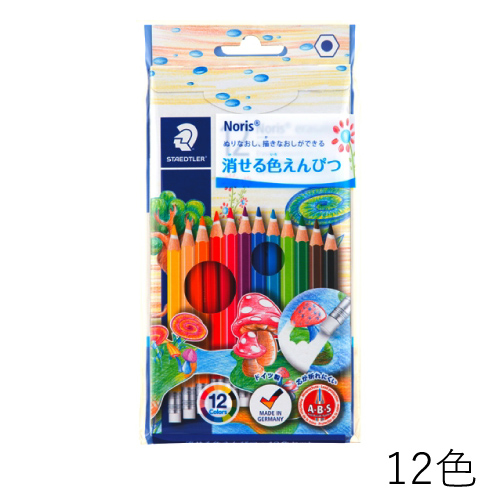 ヨーロッパ安全基準(EN71)に基づいて作られた安全性の高い六角軸の消せる色鉛筆。