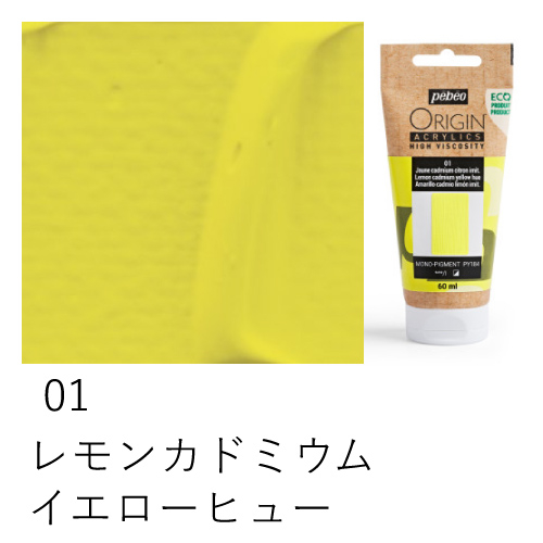 ペベオ オリジン水性アクリル絵具 60mlチューブ 01 レモンカドミウムイエローヒュー