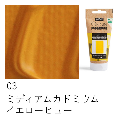 ペベオ オリジン水性アクリル絵具 60mlチューブ 03 ミディアムカドミウムイエローヒュー