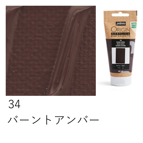 ペベオ オリジン水性アクリル絵具 60mlチューブ 34 バーントアンバー