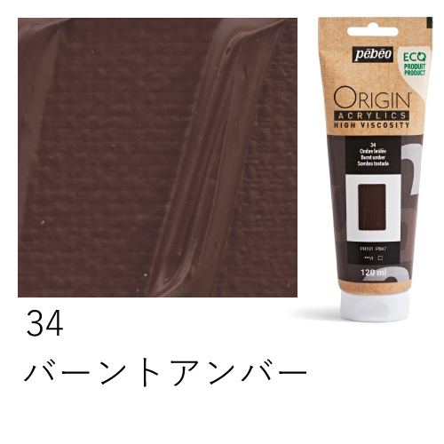 ペベオ オリジン水性アクリル絵具 120mlチューブ 34 バーントアンバー