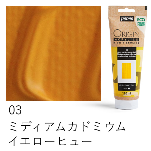 ペベオ オリジン水性アクリル絵具 120mlチューブ 03 ミディアムカドミウムイエローヒュー