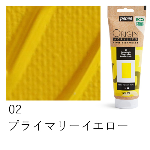 ペベオ オリジン水性アクリル絵具 120mlチューブ 02 プライマリーイエロー