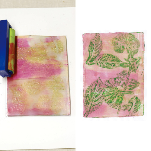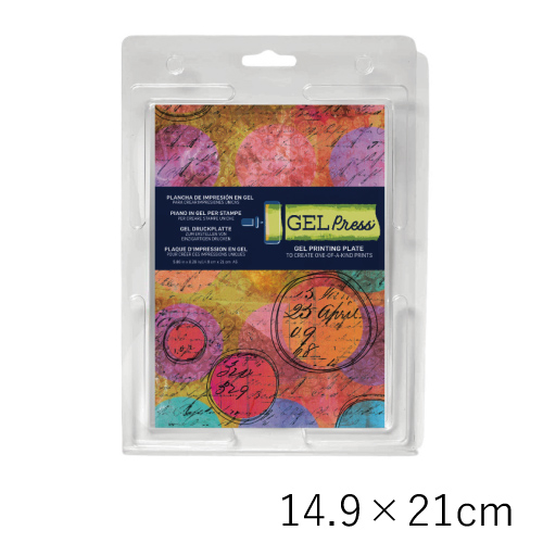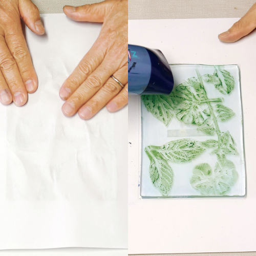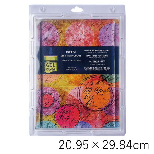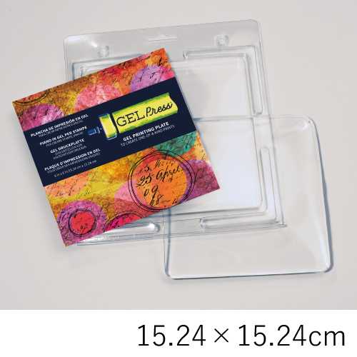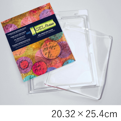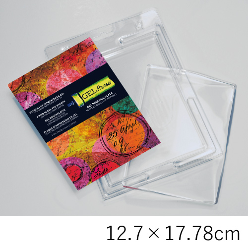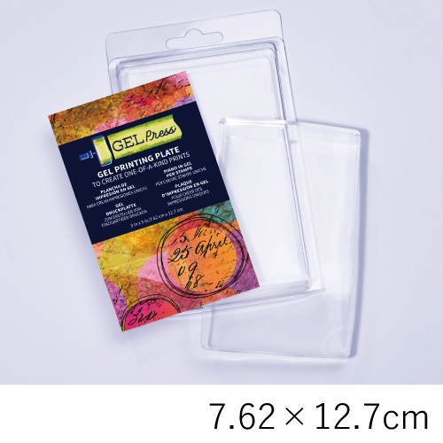 ジェルプレスプレートは、植物の葉などの自然物や印刷物、テクスチャーシートなどを使って転写することができるプレートです。表面は、より細部と質感を捉えるように設計され、ローラーを使うとうまく仕上がるように作られています。