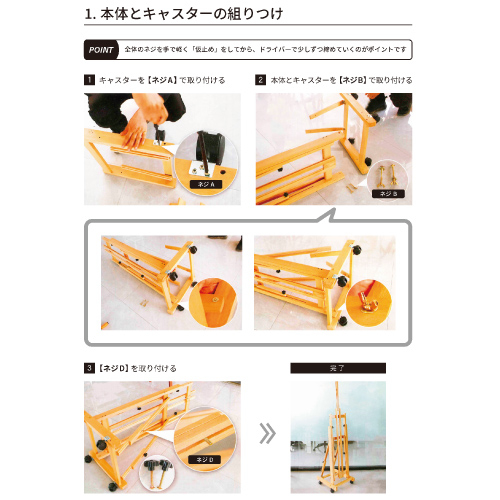 お客様ご自身で組立てをする商品です。ネジ・ドライバー・説明書付き。