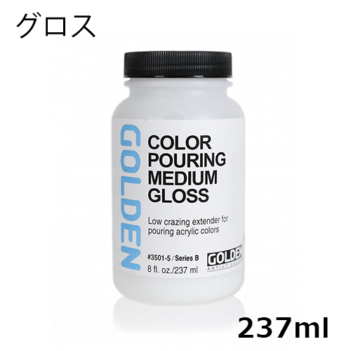 ・レベリング性が高く、アクリル絵具のポーリングを行う際にひび割れができにくいメディウムです。グロスタイプでは、美しい光沢のあるポーリングを作ることができます。