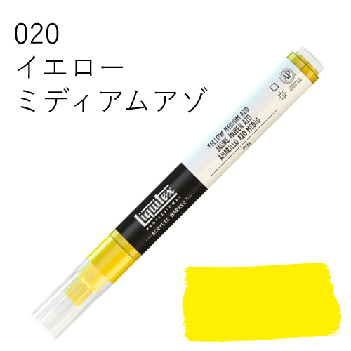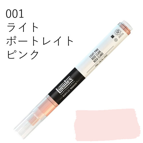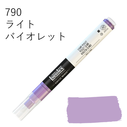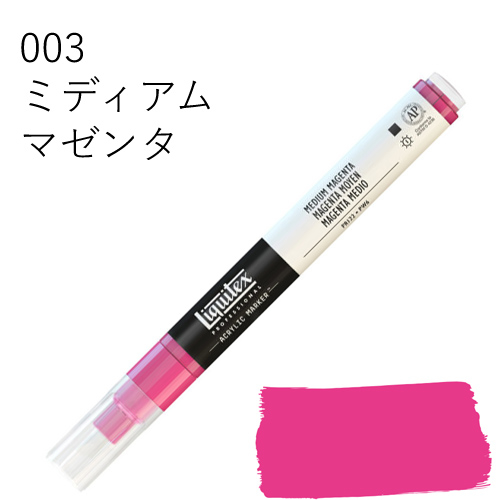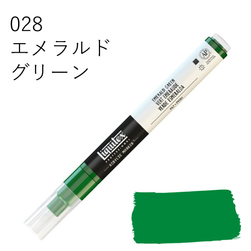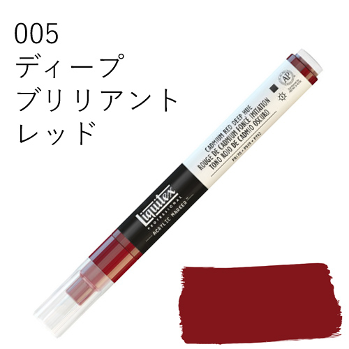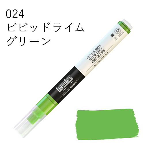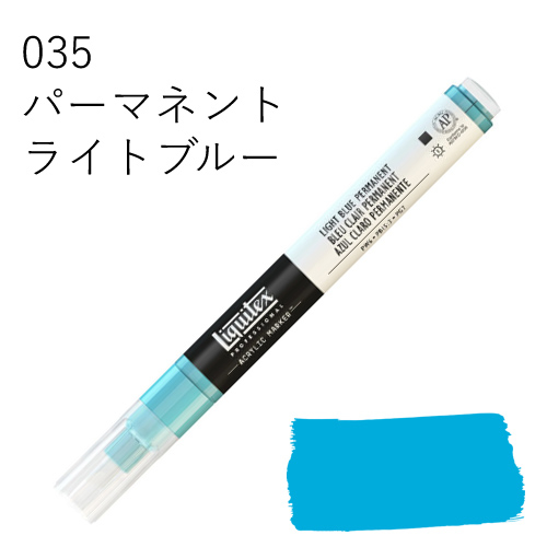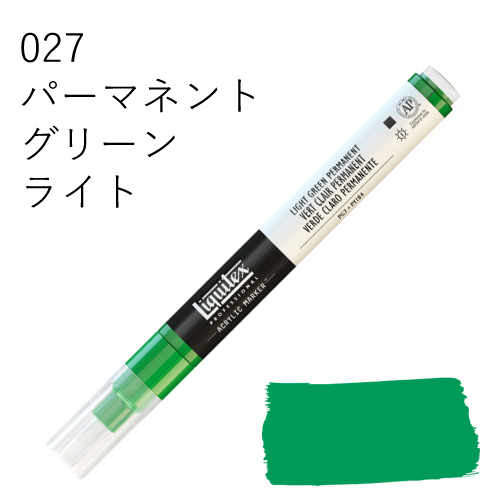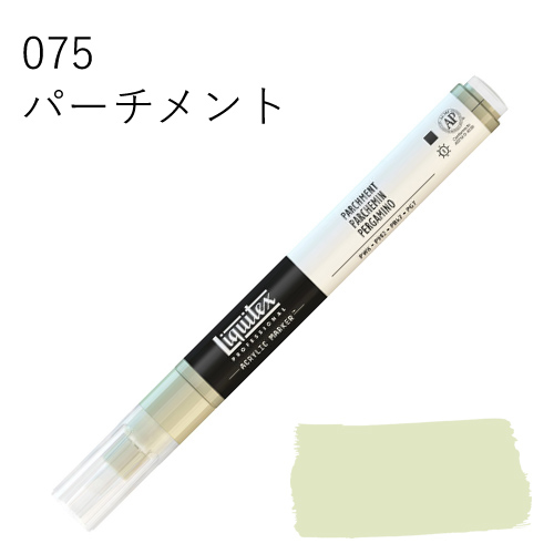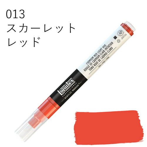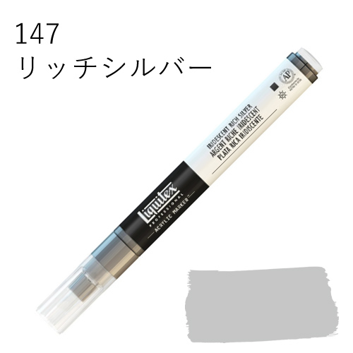 鮮やかな発色を放つ、最高級顔料を使用したマーカーです。乾いた後も色褪せず、鮮明な色彩を保ちます。水に溶けない耐水性タイプのため、乾燥後、重ね塗りも可能です。同じ色を何度も塗り重ねればアクリル絵具そのものの質感に近づけることができ、異なる色を塗り重ねていくと、奥行きのある複雑な色合いを出すことができます。全50色中44色がリキテックスカラーの色相とマッチしているため、他のリキテックス商品(絵具やリキッドなど)との併用ができ、作品制作にスムーズに取り入れられます。